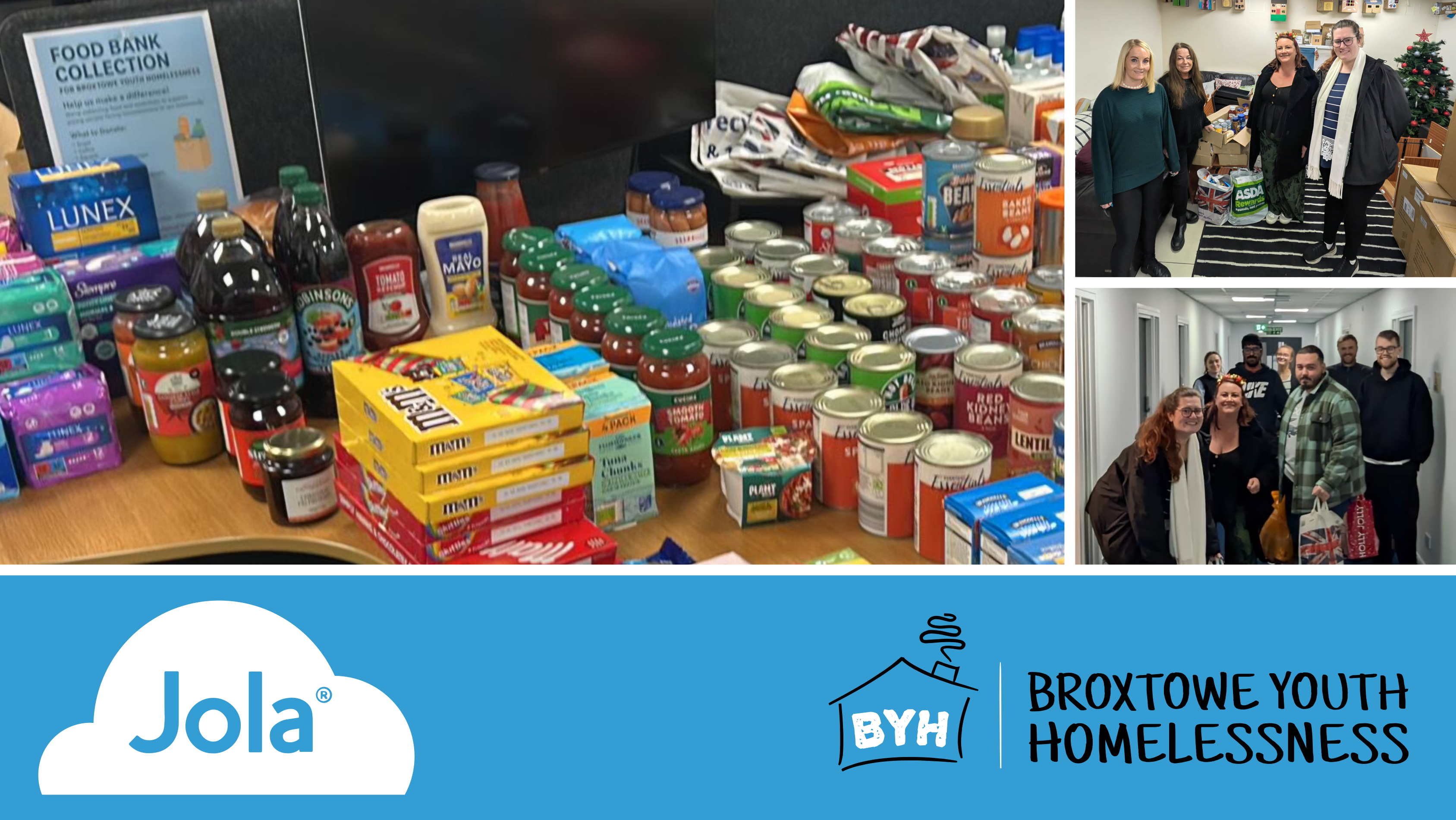 In support of this mission, Jola employees have organised a collection of non-perishable food items and supplies which can be used within the charity’s Home Starter Packs. The collection was delivered to BYH earlier this week.